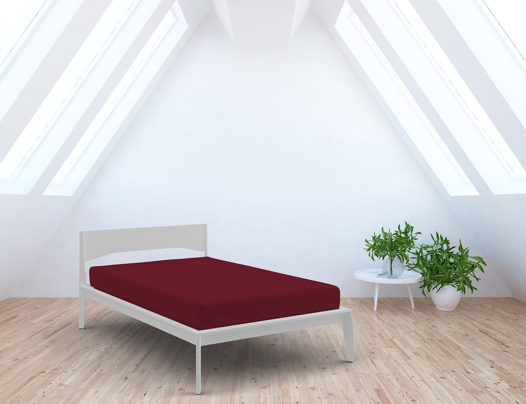 Sous Drap avec Coins et Élastique Couleur Unie Bordeaux Différentes Tailles