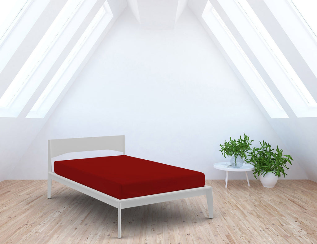 Drap de dessous avec coins et élastique Couleur unie Rouge Différentes tailles
