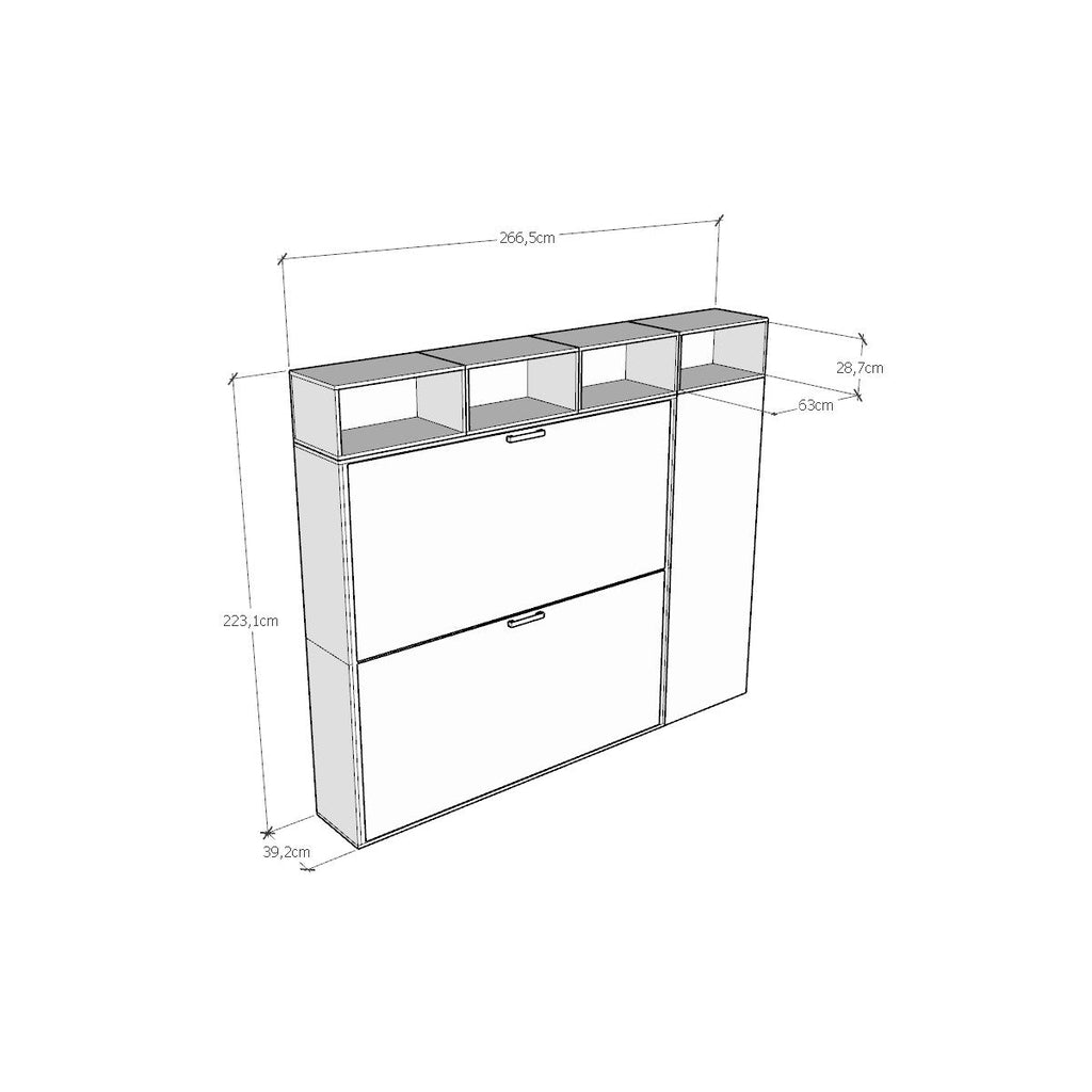 Letto chiuso a parete: L.266,5 P.39,2 H.223,1 cm