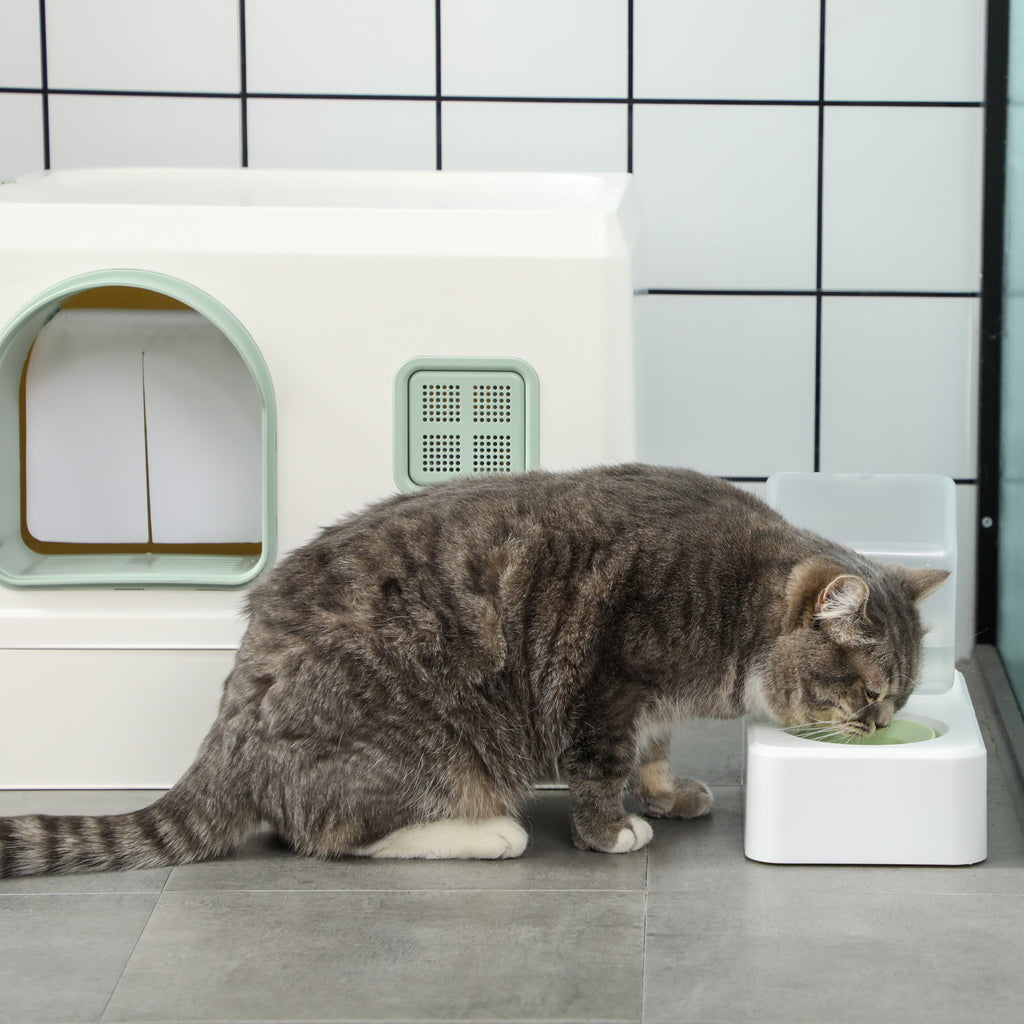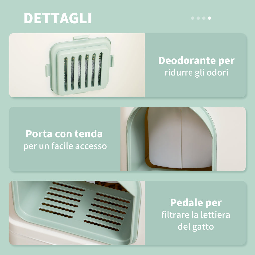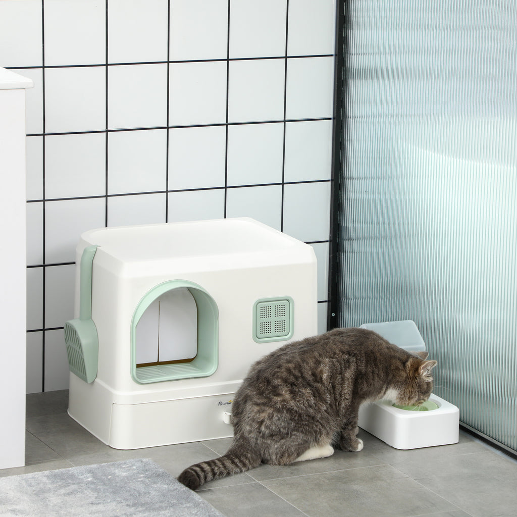 Lettiera Coperta per Gatti 50x40x40 cm con Fontanella Vassoio e Paletta Verde e Bianca