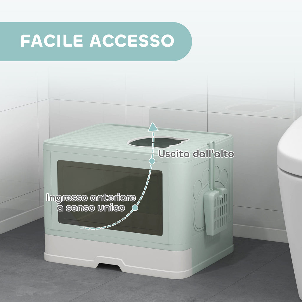 Lettiera per Gatti Chiusa Doppia Entrata con Paletta e Spazzola Integrata Verde
