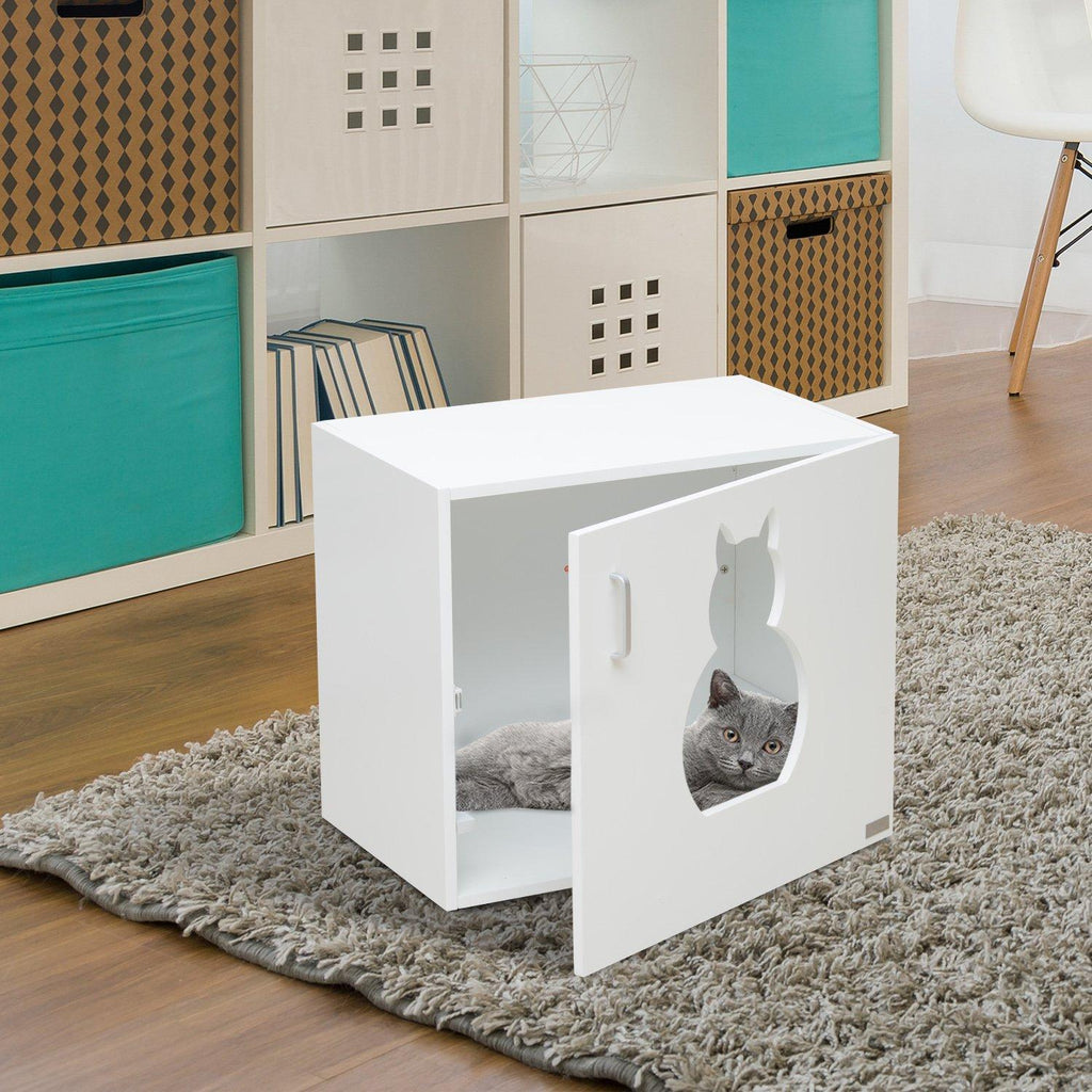 Litière pour Chat en MDF Blanc 63x53.5x41 cm