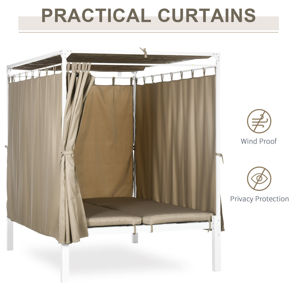 Lettino a Baldacchino da Esterno 210x149x200 cm Schienale Regolabile con Tende Khaki e Bianco