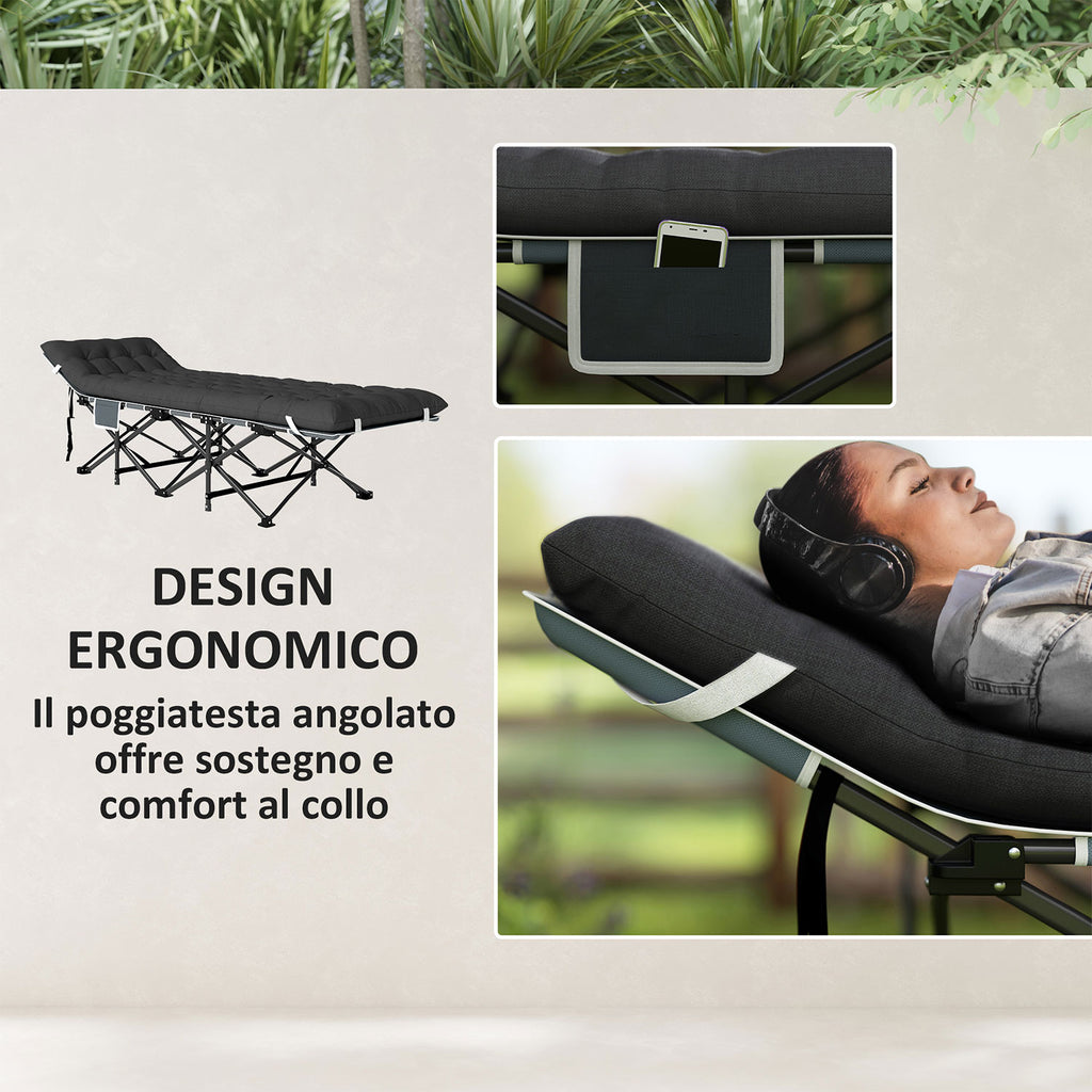 Lettino da Campeggio Pieghevole 196x68x37 cm con Poggiatesta Inclinato e Materasso Rimovibile Nero