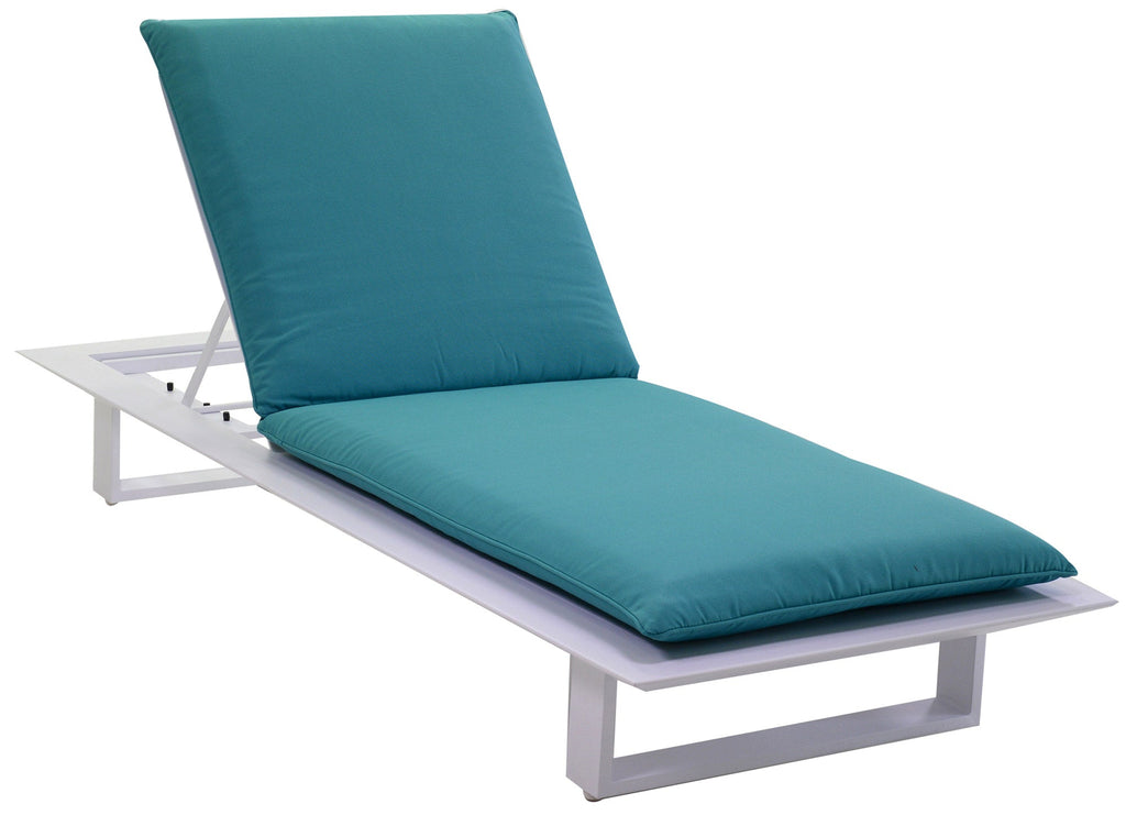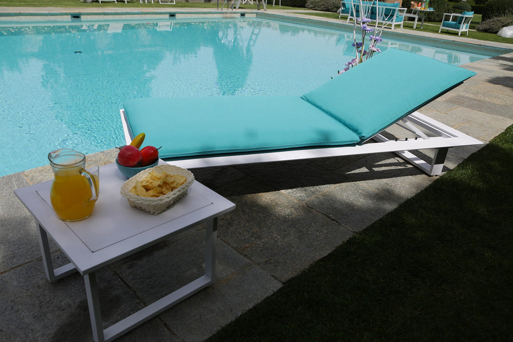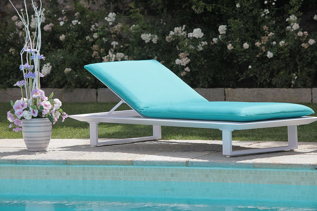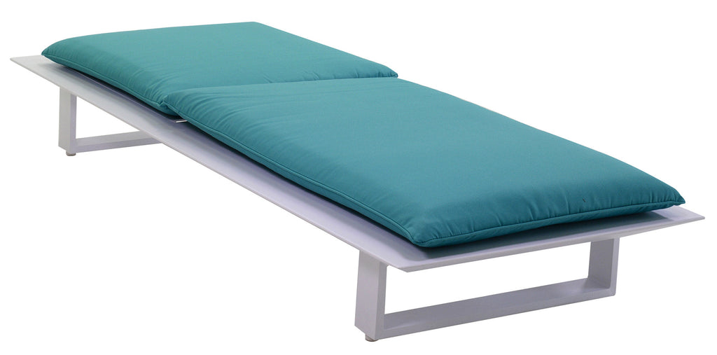 Lit bébé Charlotte en aluminium blanc avec coussins turquoise et gris 200x83H34/84 cm