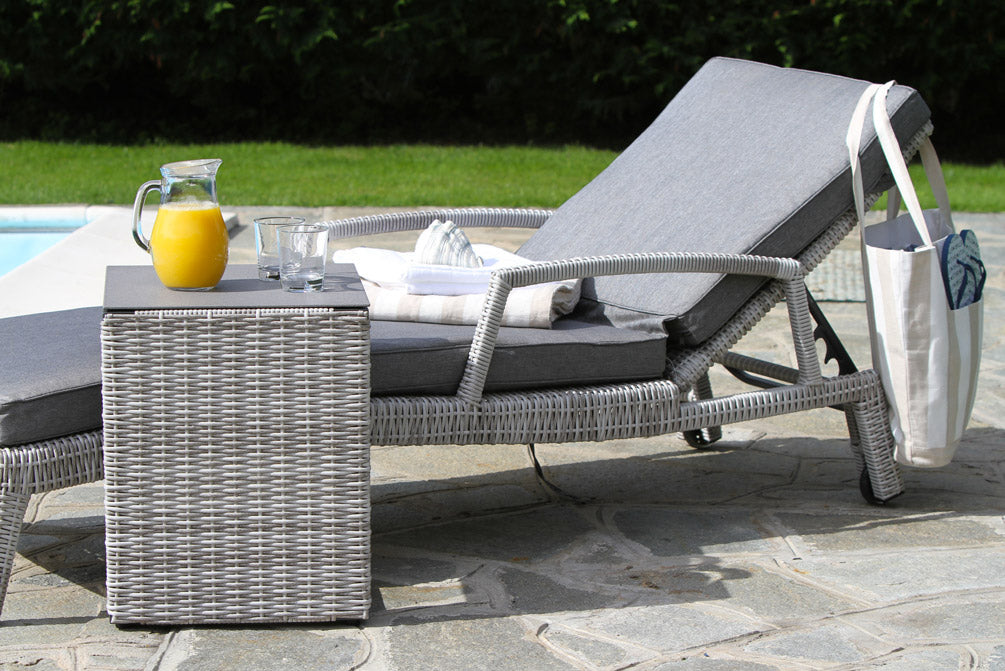 Chaise longue de jardin en polyrotin avec coussin gris Salem