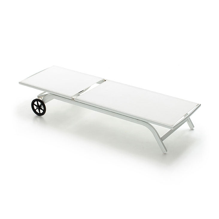 Transat de jardin inclinable en aluminium et textilène à roulettes Taddei Egeo Blanc