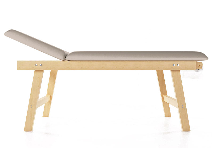 Fabriqué en bois de hêtre massif Pollmeier de couleur naturelle, avec un rembourrage en mousse 25/D et une housse en similicuir lavable, ce lit peut être utilisé par les salons de beauté et les centres médicaux, mais le rend également adapté aux centres de massage et de physiothérapie. Ce lit est équipé d'une tête de lit réglable grâce à des charnières spéciales en acier galvanisé et d'un porte-rouleau très utile.