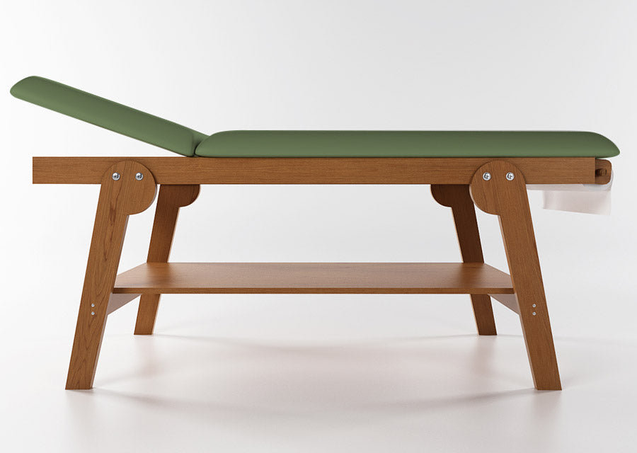 Fabriqué en bois de hêtre massif Pollmeier couleur cerisier, avec un rembourrage en mousse 25/D et une housse en similicuir lavable, ce lit peut être utilisé par les salons de beauté et les centres médicaux, mais le rend également adapté aux centres de massage et de physiothérapie. Ce lit est équipé d'une tête de lit réglable grâce à des charnières spéciales en acier galvanisé et d'un porte-rouleau très utile.