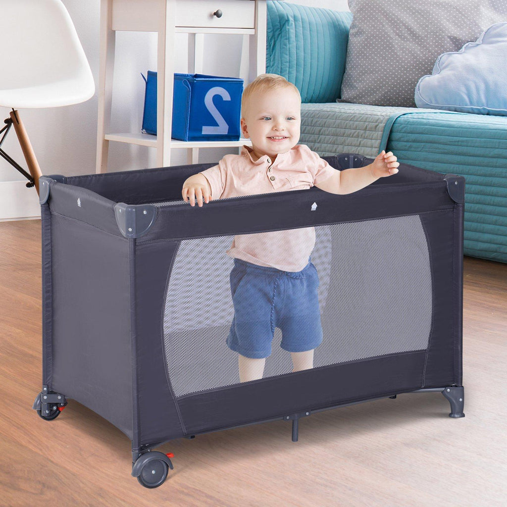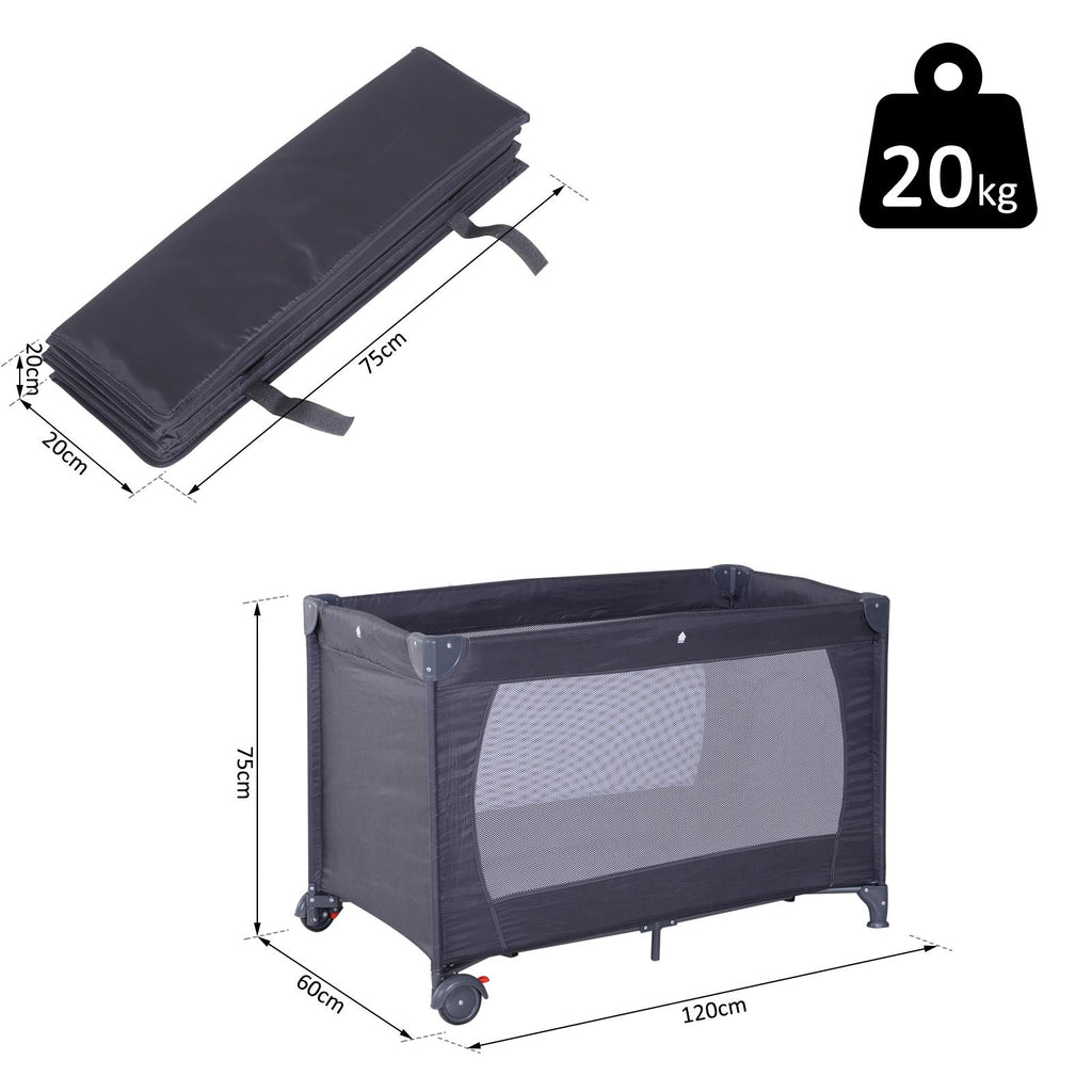 Lit de voyage pliant pour enfants avec sac et matelas en tissu Oxford gris foncé