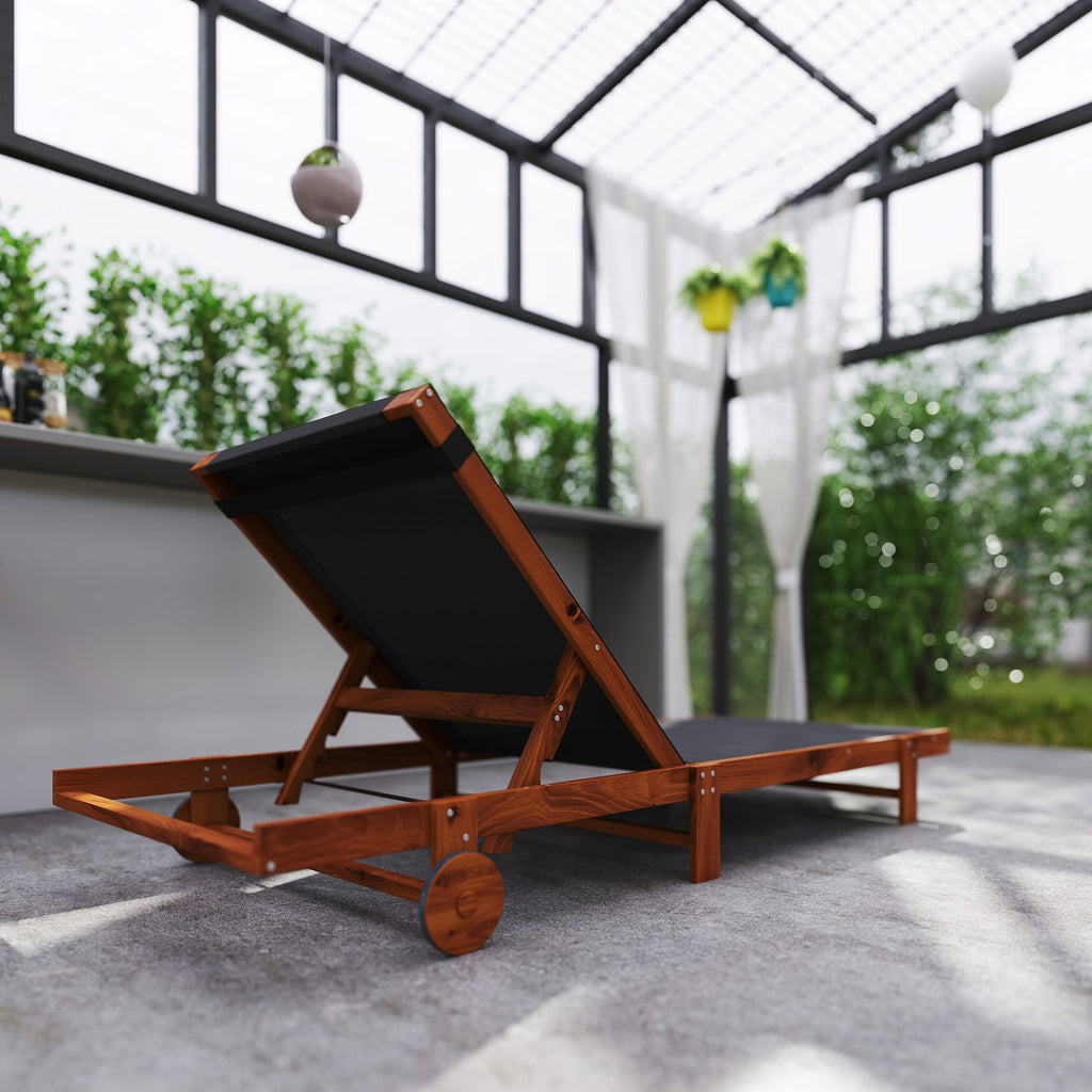 Lettino Prendisole 84x200x101 cm Schienale Regolabile su 4 Posizioni in Legno e Textilene Nero