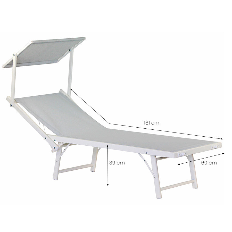 Lettino Prendisole da Giardino 181x60xH39 cm in alluminio bianco ghiaccio Bagnino