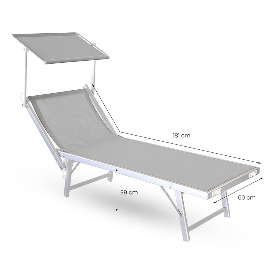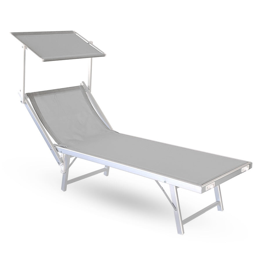 Lettino Prendisole da Giardino 181x60xH39 cm in alluminio e tela grigia Bagnino
