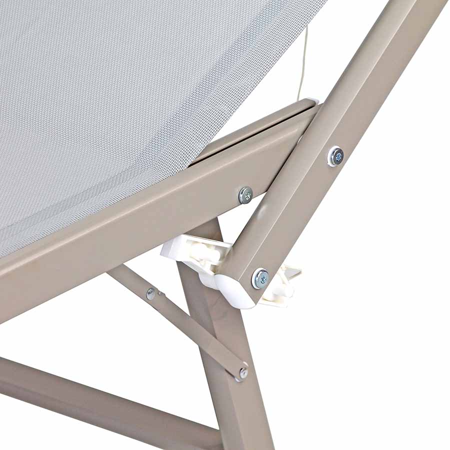 Prediligi prodotti validi e di qualità per le tue pause di relax durante la bella stagione, prova lo stile del lettino mareLa struttura di questo lettino prendisole è realizzata in alluminio anodizzato con verniciatura a polvere colore ecrù, per la seduta invece è presente un resistente textilene dall'elegante color grigio.