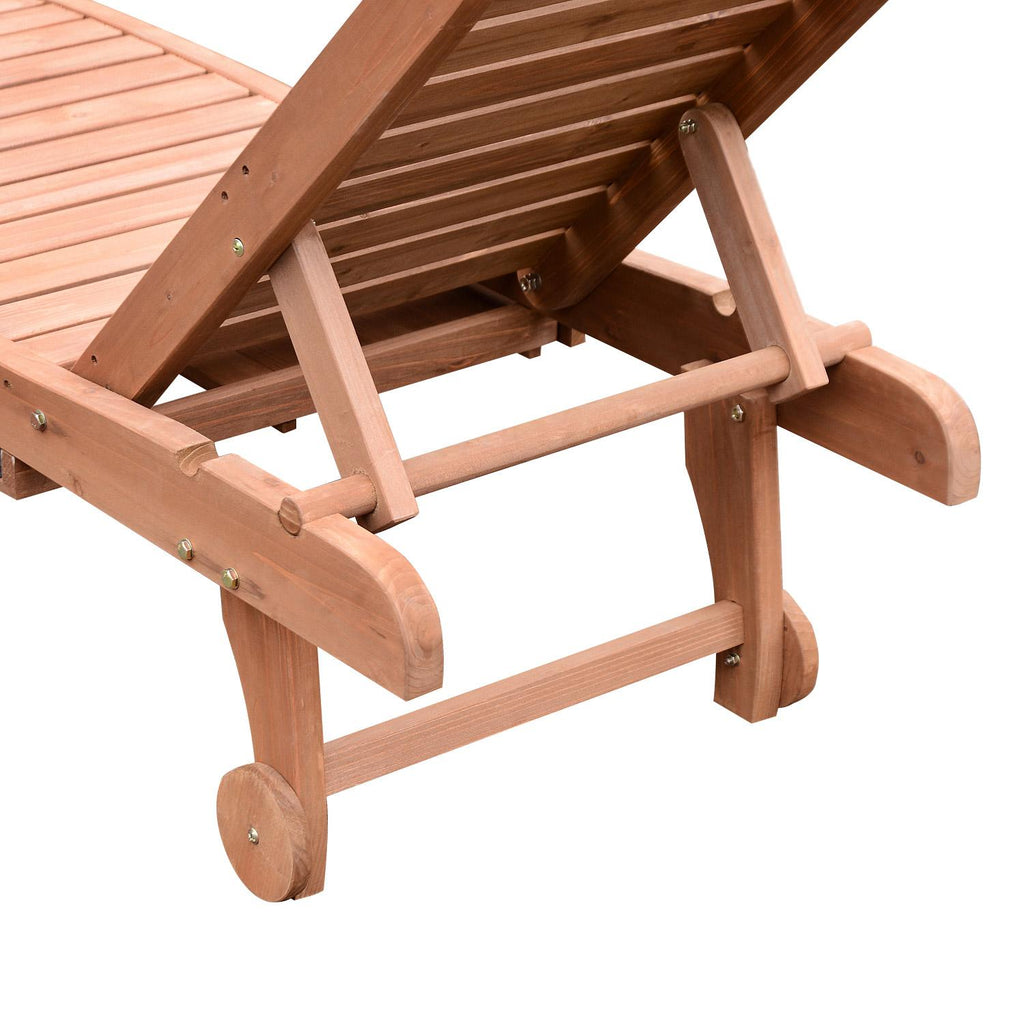 Transat de jardin 182x60x35 cm avec roues et plateau en bois amovible