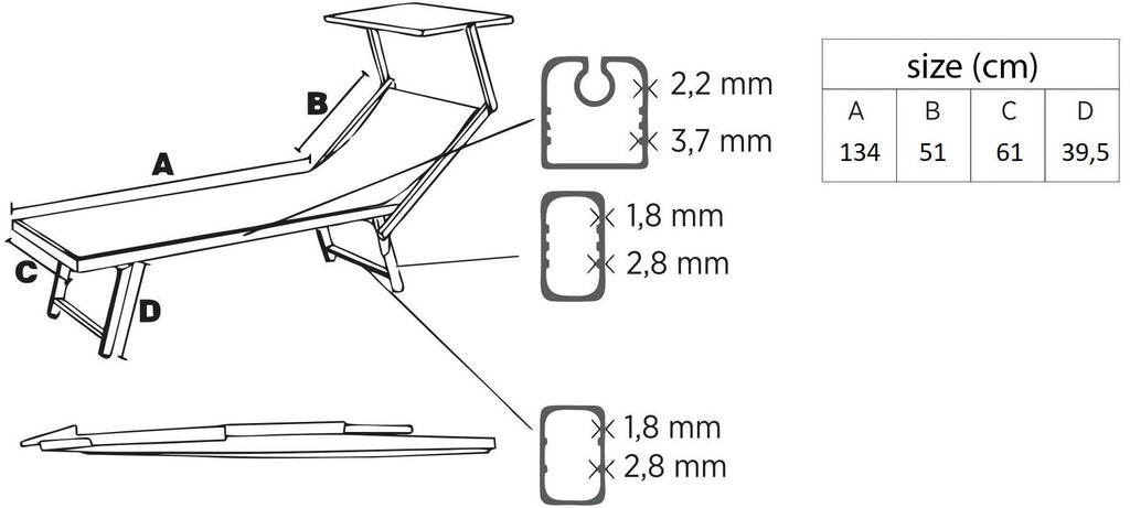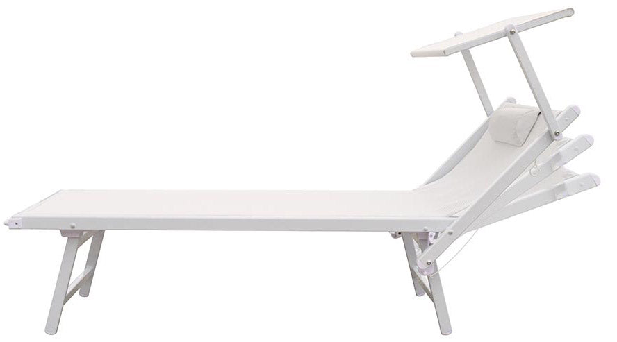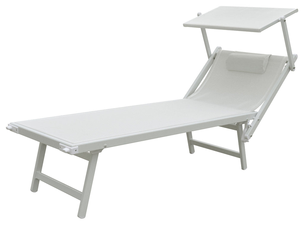 Transat de jardin 185x61x39,5 cm en aluminium blanc et cadre en textilène blanc