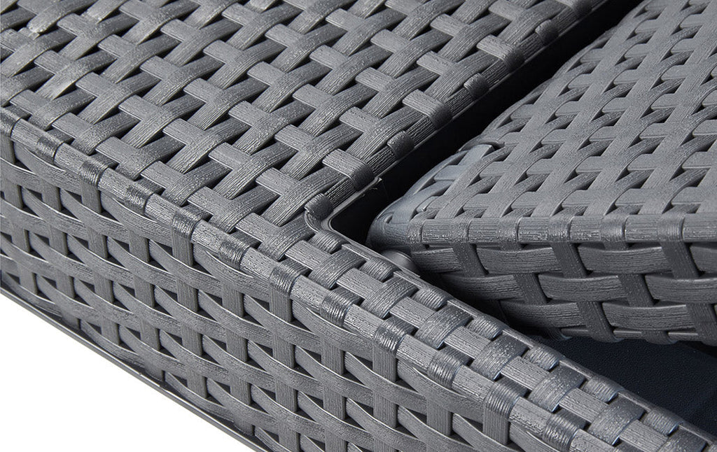 Profitez d'agréables moments de détente avec Jaipur. Fabriqué avec une finition particulière qui reproduit le tressage typique du rotin, il est équipé d'un dossier inclinable en 4 positions différentes. Facile à monter et grâce à la possibilité de le fermer facilement, il est parfait pour occuper de petits espaces pendant les mois les plus froids de l'année.
