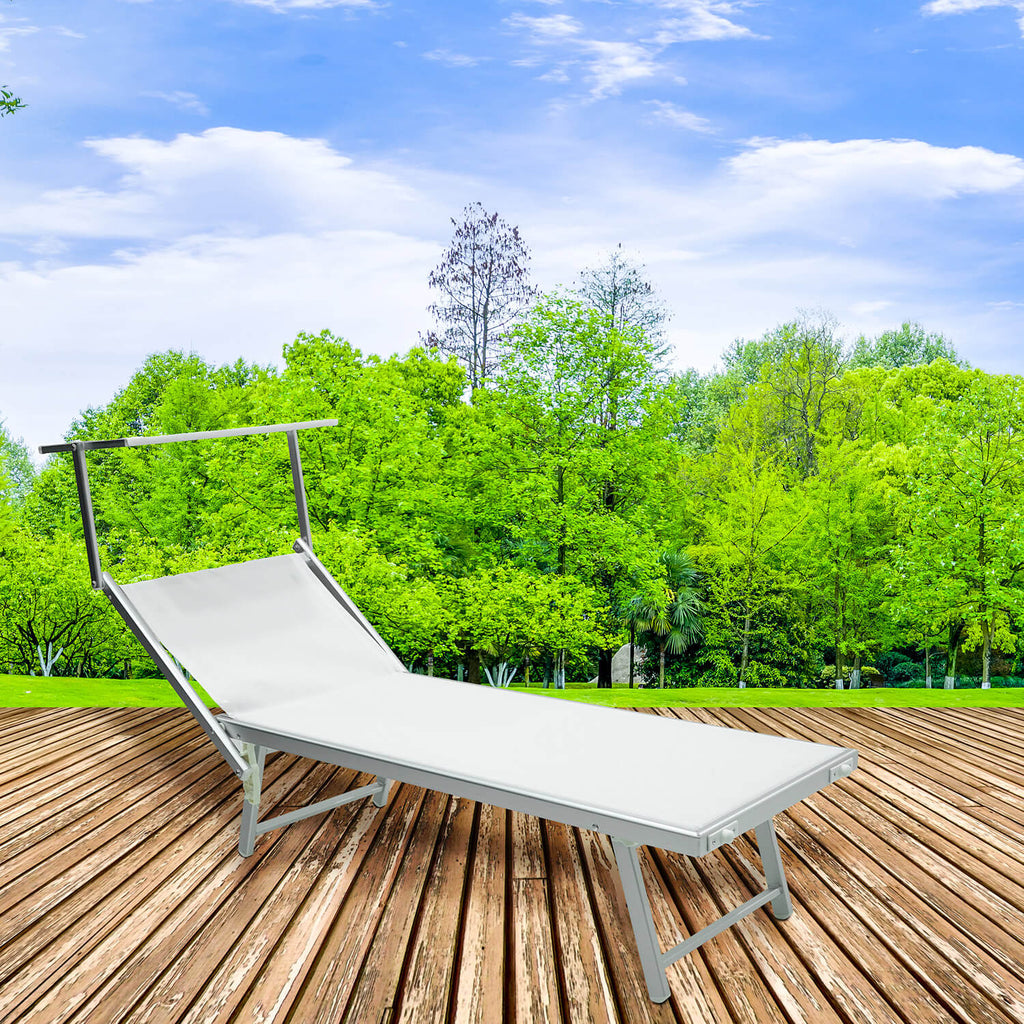 Transat de jardin 189x61x38 cm en Aluminium et Textilène Simba Blanc