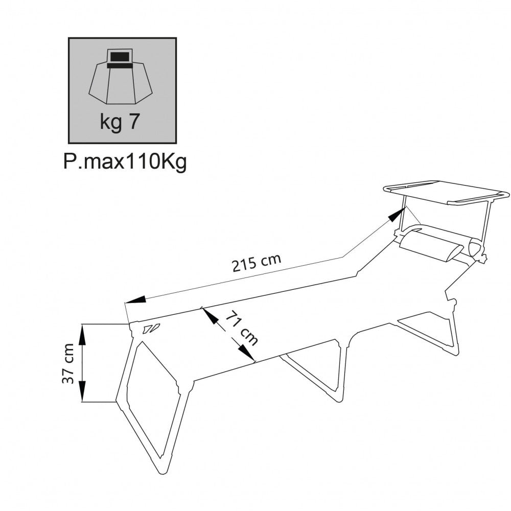 Transat de jardin 215x71x37 h cm en textilène bleu clair