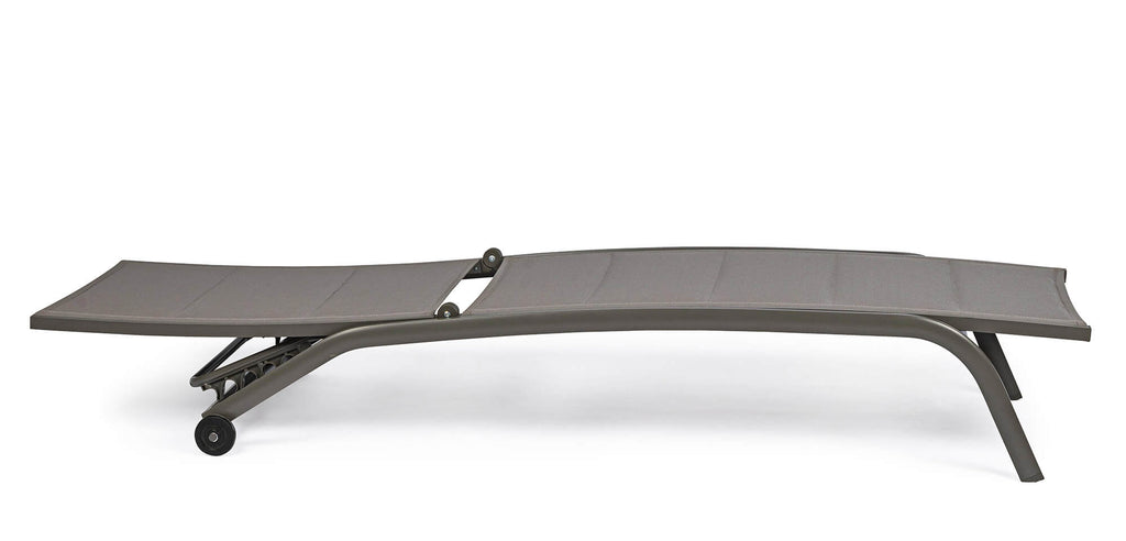 Transat de jardin 61x192x96 cm avec roues en aluminium taupe