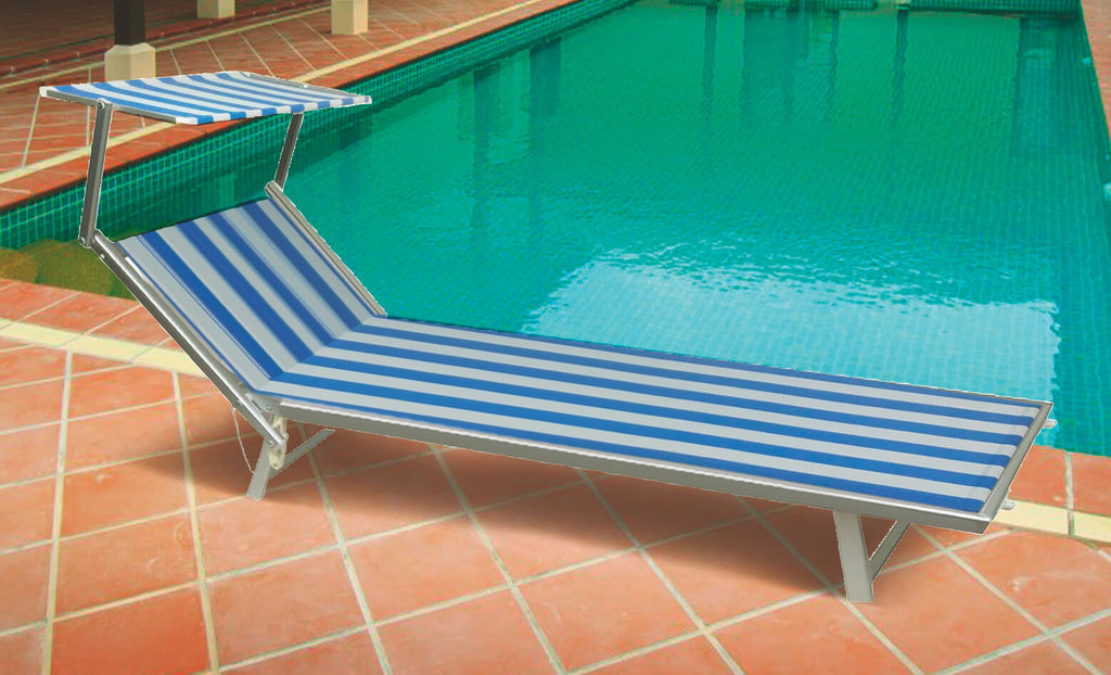 Soriani Riccione Transat de jardin en aluminium à rayures blanches et bleues