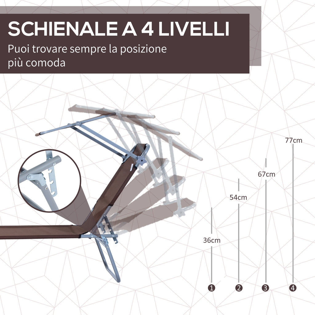 Chaise longue pliante inclinable en fer avec pare-soleil Oxford marron