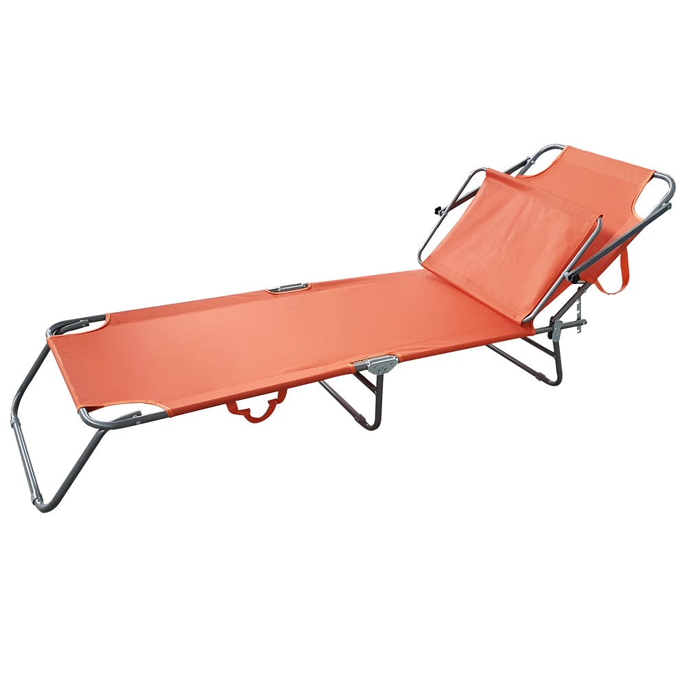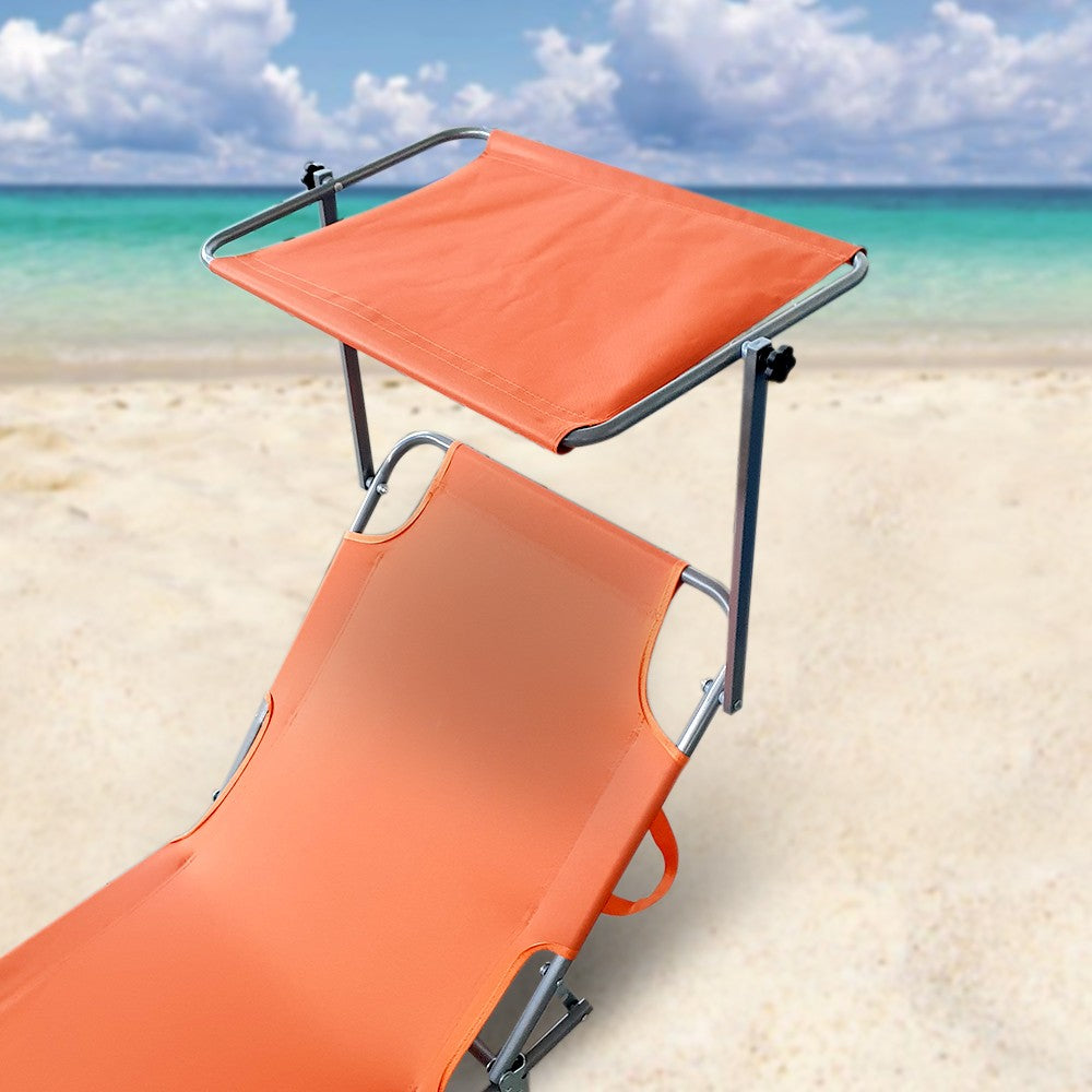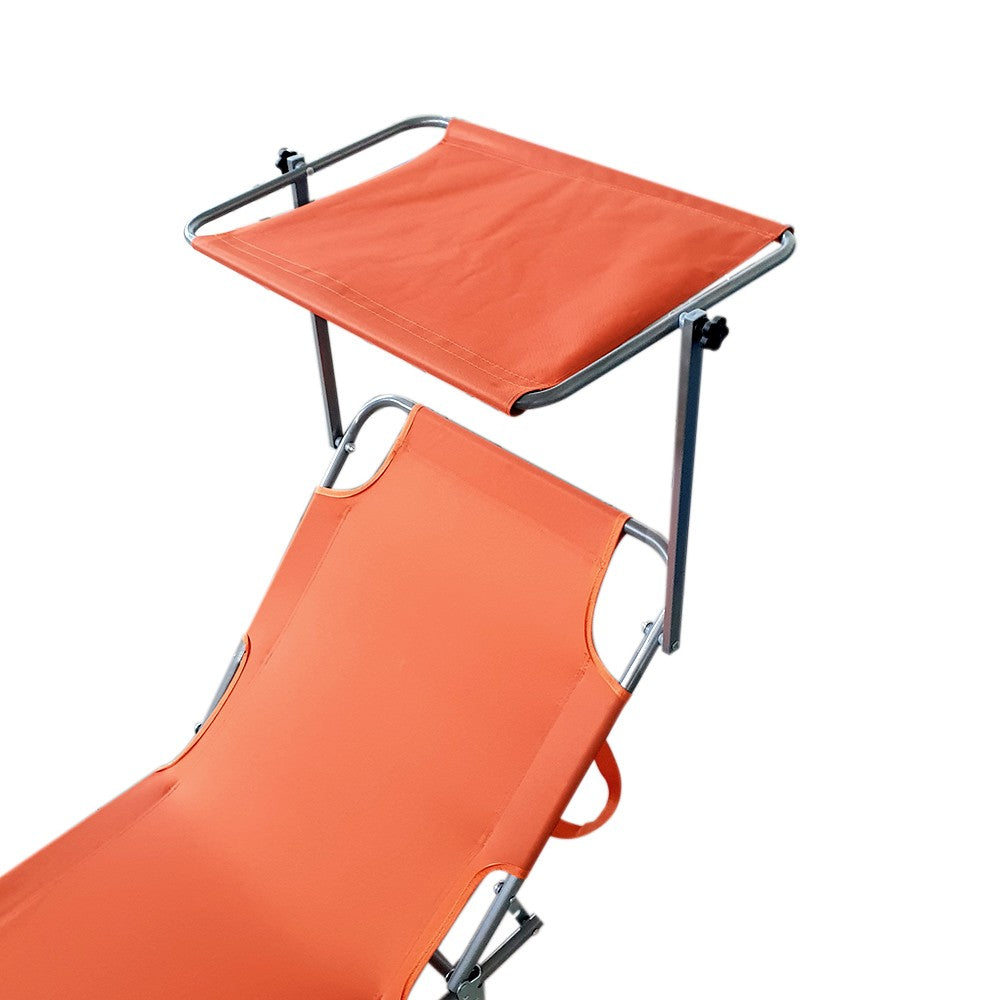 Chaise Longue Pliante avec Dossier Réglable et Parasol Orange