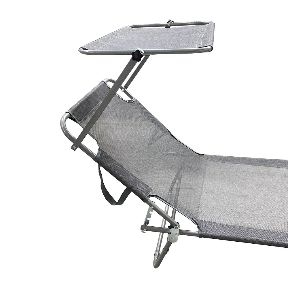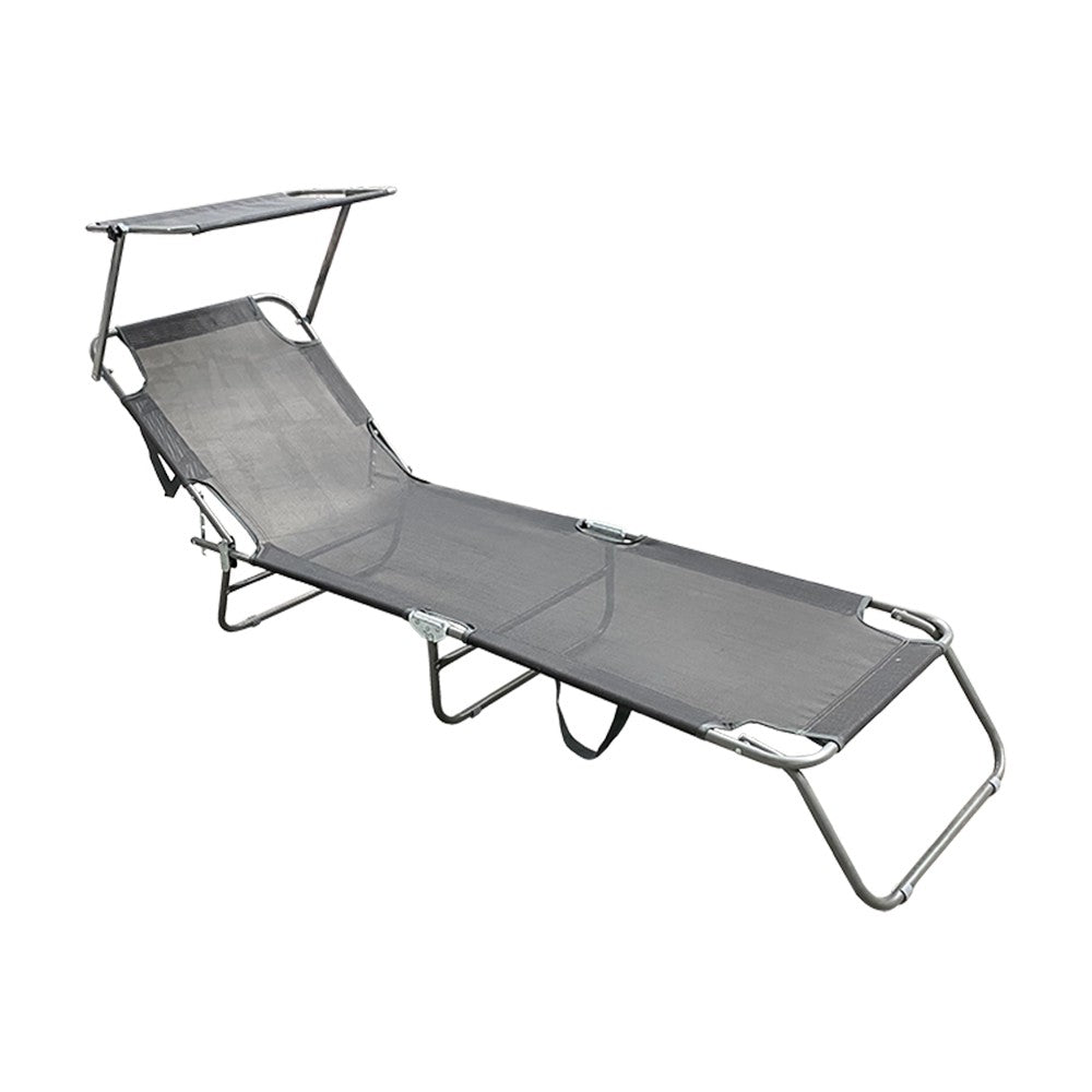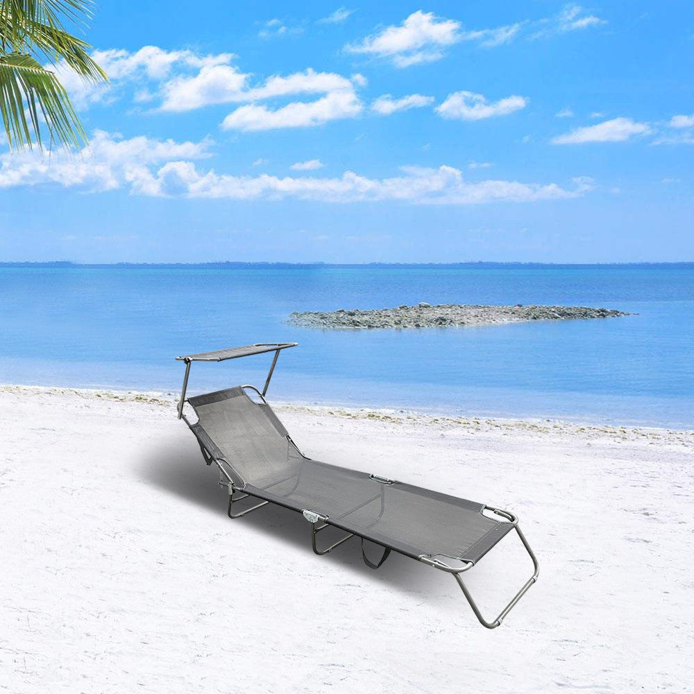 Chaise Longue Pliante avec Dossier Réglable et Parasol Gris
