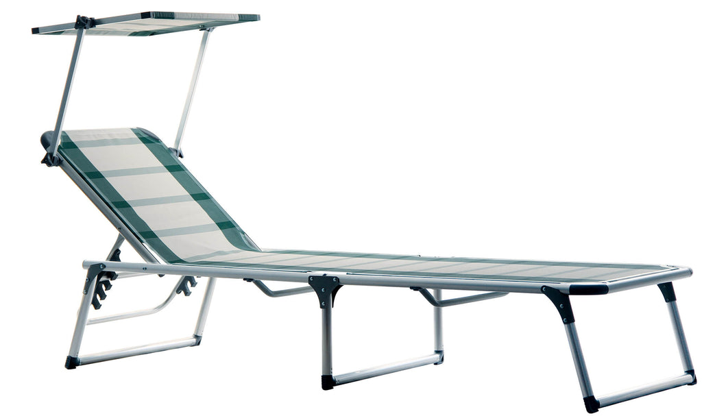 Chaise longue de jardin pliante en aluminium avec auvent Vorghini blanc et vert