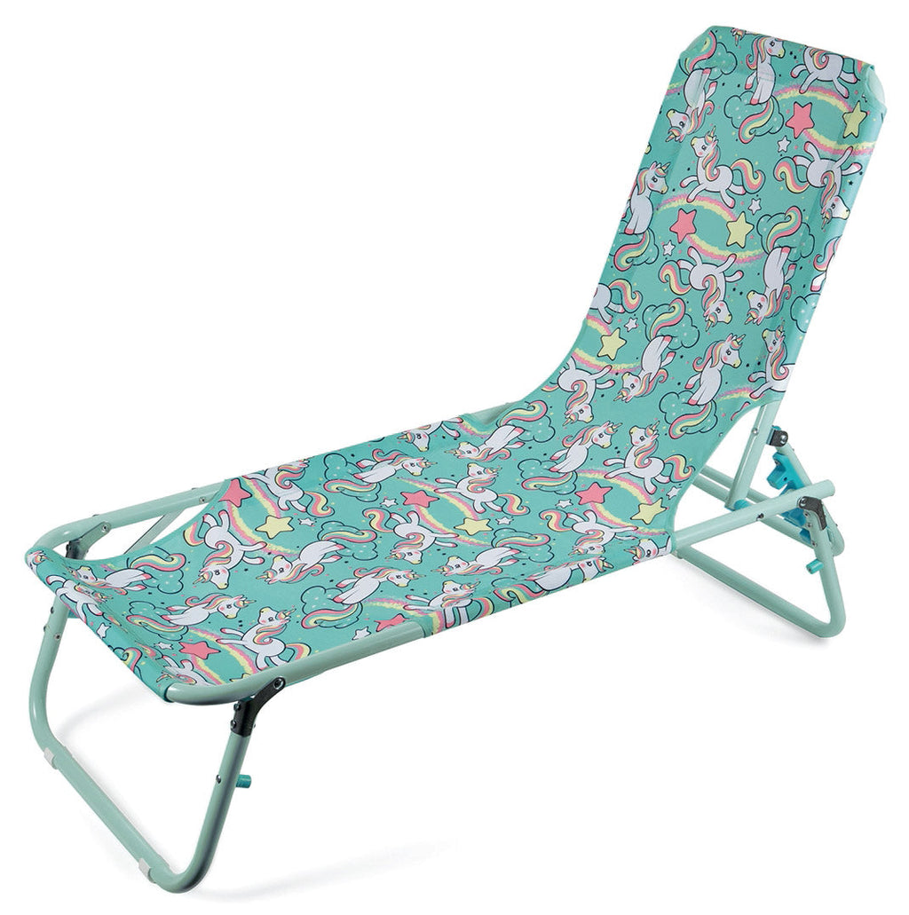 Lit de Soleil Pliant pour Enfants en Métal Soriani Bleu Licorne