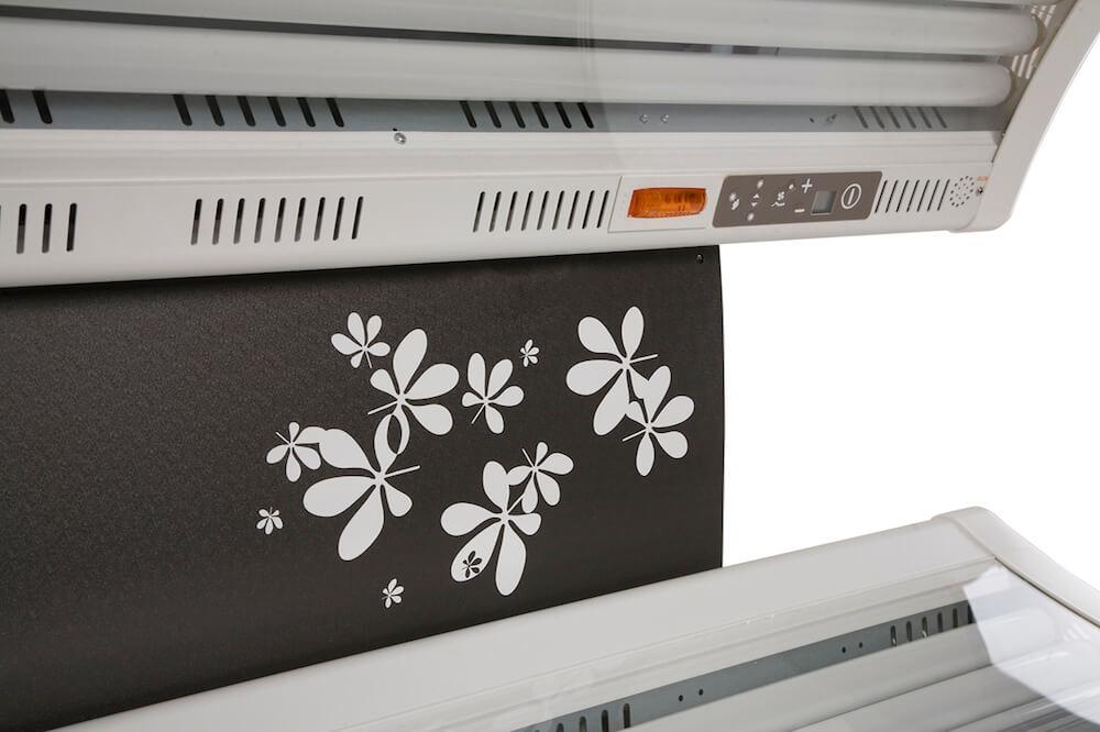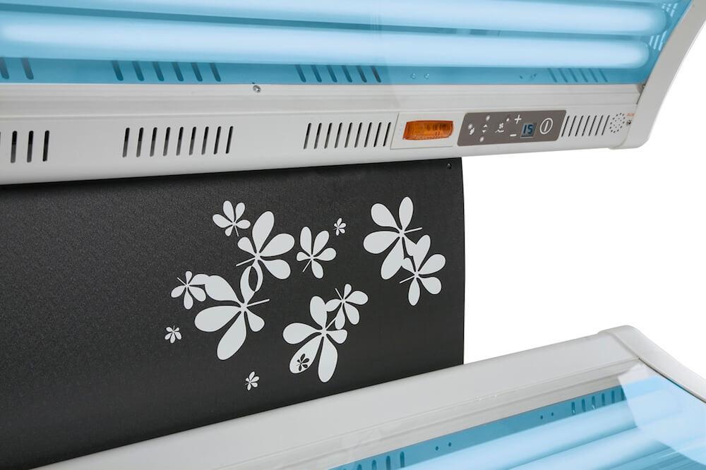 Ce lit de bronzage luxueux avec intensificateur facial à haute pression promet un bronzage agréablement naturel toute l'année. Le design linéaire s'accompagne d'un équipement technologique de haut niveau, avec 24 lampes Maxlight et 6 ventilateurs de refroidissement. La minuterie numérique permet une programmation personnalisée de chaque session. Avec l'appareil exclusif d'aromathérapie Ambient Scent et le système audio Stereo Active pour la connexion à un lecteur CD ou MP3, l'art du bronzage se transforme en une expérience de bien-être et de relaxation totale.