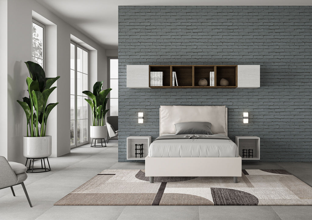 Letto una piazza e mezza in varie misure Antea Large con testata e giroletto imbottiti, rivestimento in similpelle, particolarmente versatile e facilmente abbinabile a qualsiasi stile di arredamento. Il letto una piazza e mezza Antea Large è caratterizzato da uno stile elegante e raffinato grazie all'ampia cuscinatura presente sulla testata, è interamente rivestito in similpelle. La presenza del materiale in similpelle, oltre a donare alla stanza un'atmosfera accogliente ed invitante, offre la comodità di una pulizia facile e veloce, grazie all'utilizzo di un semplice panno in microfibra. Rivestimento cuscini sfoderabile.