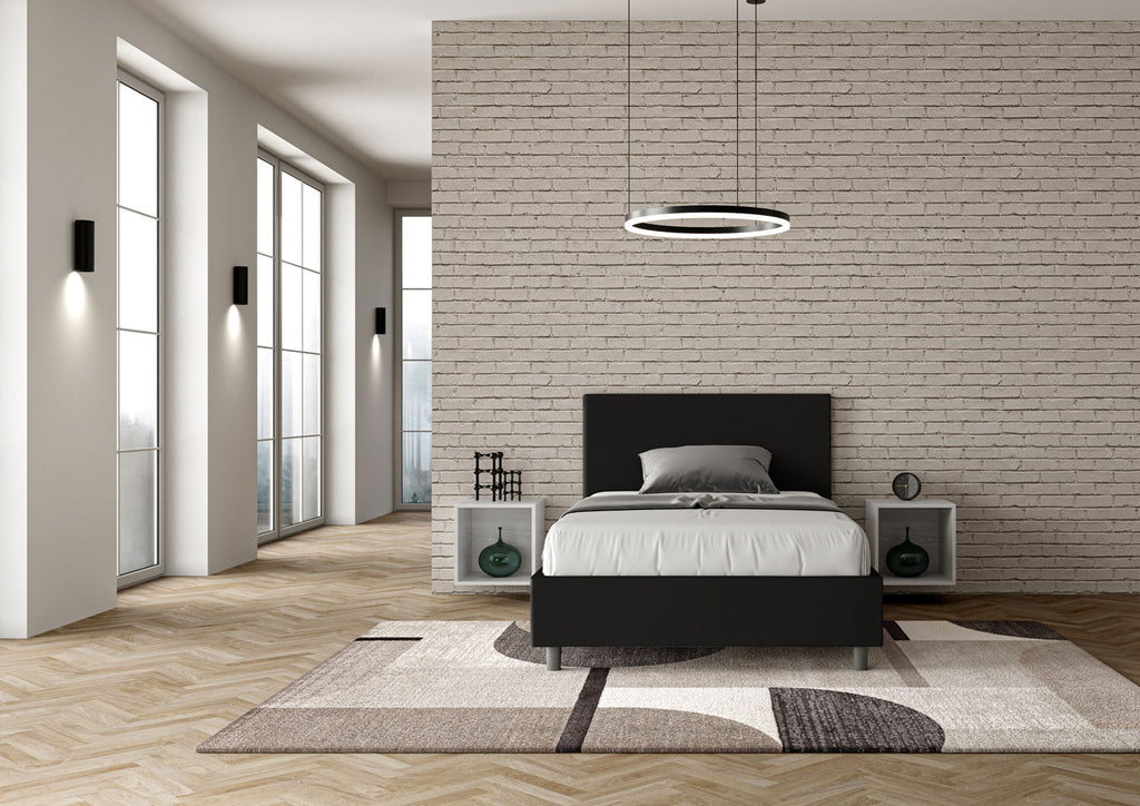 Letto 1 Piazza E Mezzo Testata Liscia Imbottito in Similpelle Adele Nero Varie Misure