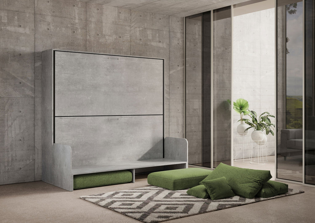 Letto Doppio A Scomparsa Kando Con Divano Cemento e Verde