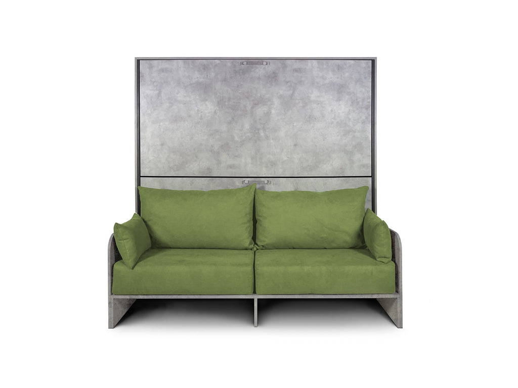 Letto Doppio A Scomparsa Kando Con Divano Con Materassi Cemento e Verde