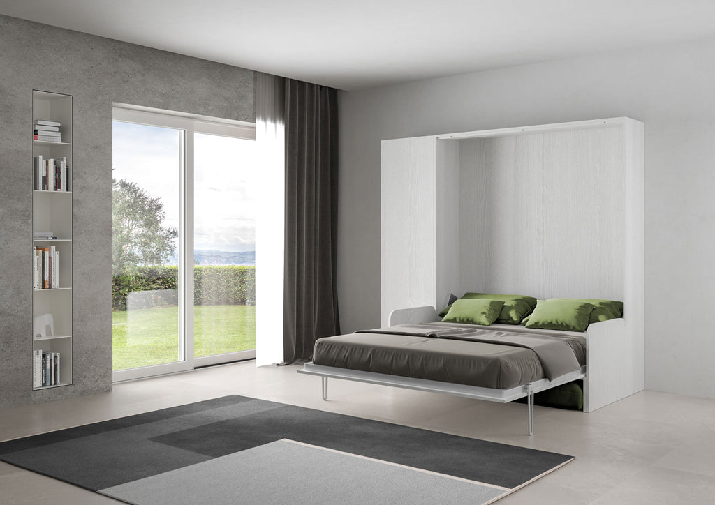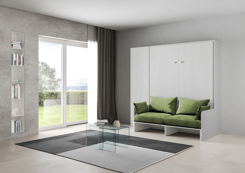 Letto Matrimoniale A Scomparsa 160 Kentaro Con Divano E Colonna Bianco Frassino e Verde