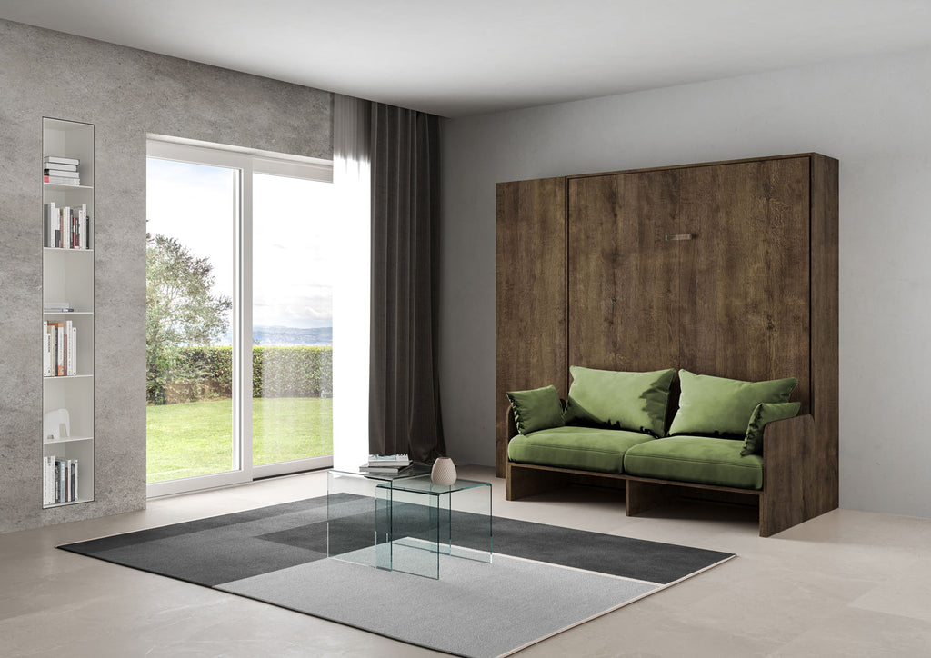 Letto Matrimoniale A Scomparsa 160 Kentaro Con Divano E Colonna Noce e Verde