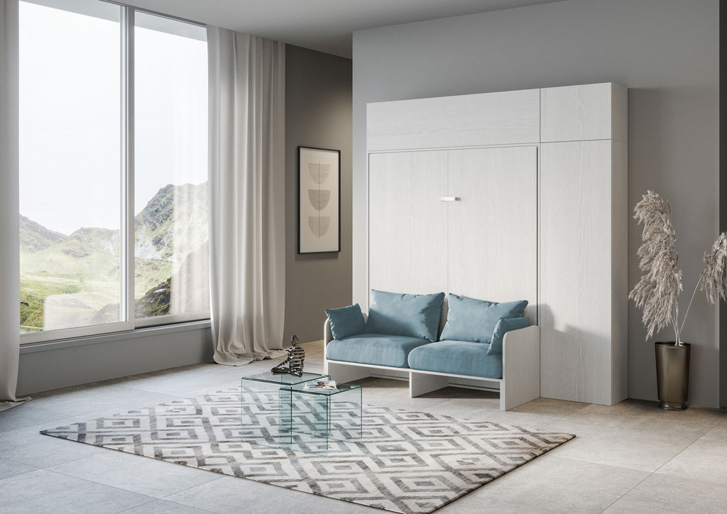 Letto Matrimoniale A Scomparsa 160 Kentaro Con Divano E Mobili Bianco Frassino e Azzurro