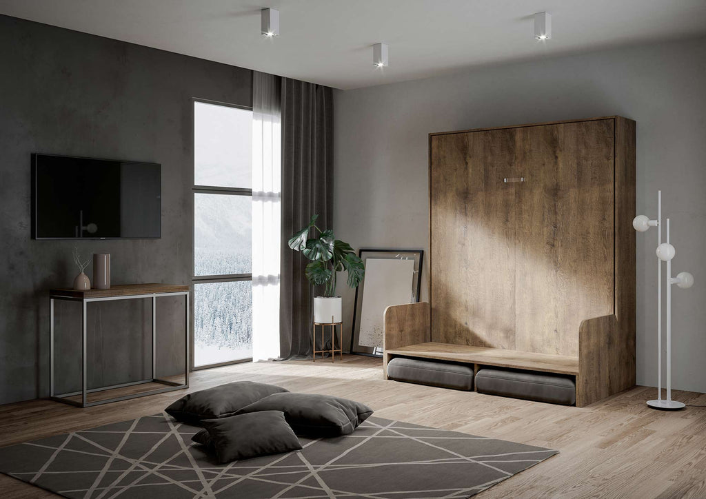 Canapé Kentaro Double, proposé avec revêtement de coussin de canapé de la même couleur que sur la photo. De nos jours, où la modernité nous pousse dans des espaces de vie de plus en plus étroits, est proposé le nouveau modèle de canapé Kentaro Sofà, une idée originale qui en quelques étapes transforme l'espace séjour en espace nuit, devenant un confortable lit double escamotable. Une solution parfaite pour les studios et les petits espaces où chaque mètre carré compte : ce modèle intelligent vous permet d'optimiser votre espace, sans sacrifier la commodité, le confort et le design. Les coussins sont en microfibre et sont entièrement déhoussables. Une fois ouvert, il n'occupe pas plus qu'un lit normal - seulement 215 cm. Le matelas pouvant être utilisé ne doit pas dépasser 160x190 épaisseur maximum 24 cm. Une fois ouvert, la hauteur du filet depuis le sol est de 22 cm. La descente verticale du lit est assistée par des vérins à gaz. La fixation murale est obligatoire.
