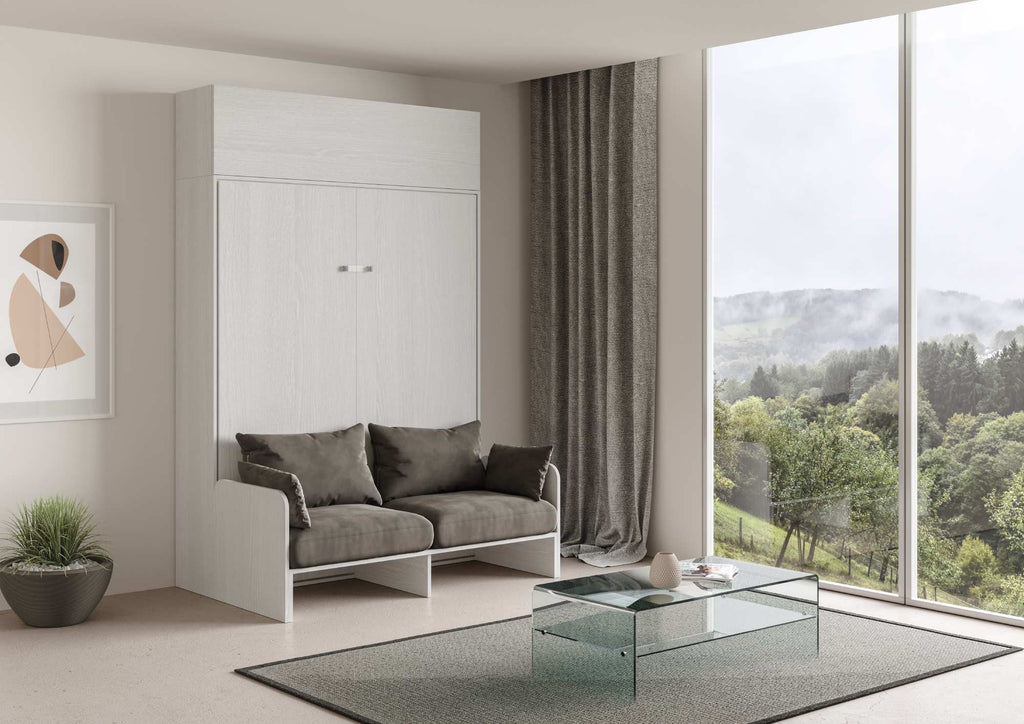 Lit double escamotable gain de place avec canapé Kentaro H250 cm blanc