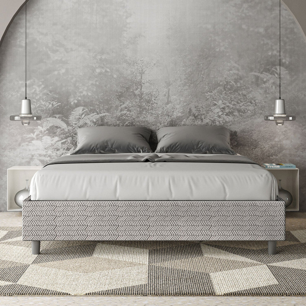 Lit double sommier Azelia avec lit rembourré, revêtement en tissu, particulièrement polyvalent et facilement combinable avec n'importe quel style d'ameublement. Le lit double sommier Azelia se caractérise par un style simple et linéaire accentué par l'absence de tête de lit. Un lit qui donnera une touche d'élégance à votre espace nuit, sans passer inaperçu, grâce aux caractéristiques distinctives de son revêtement en tissu.