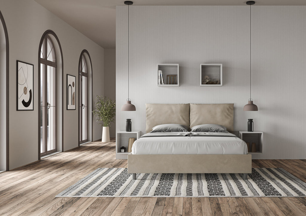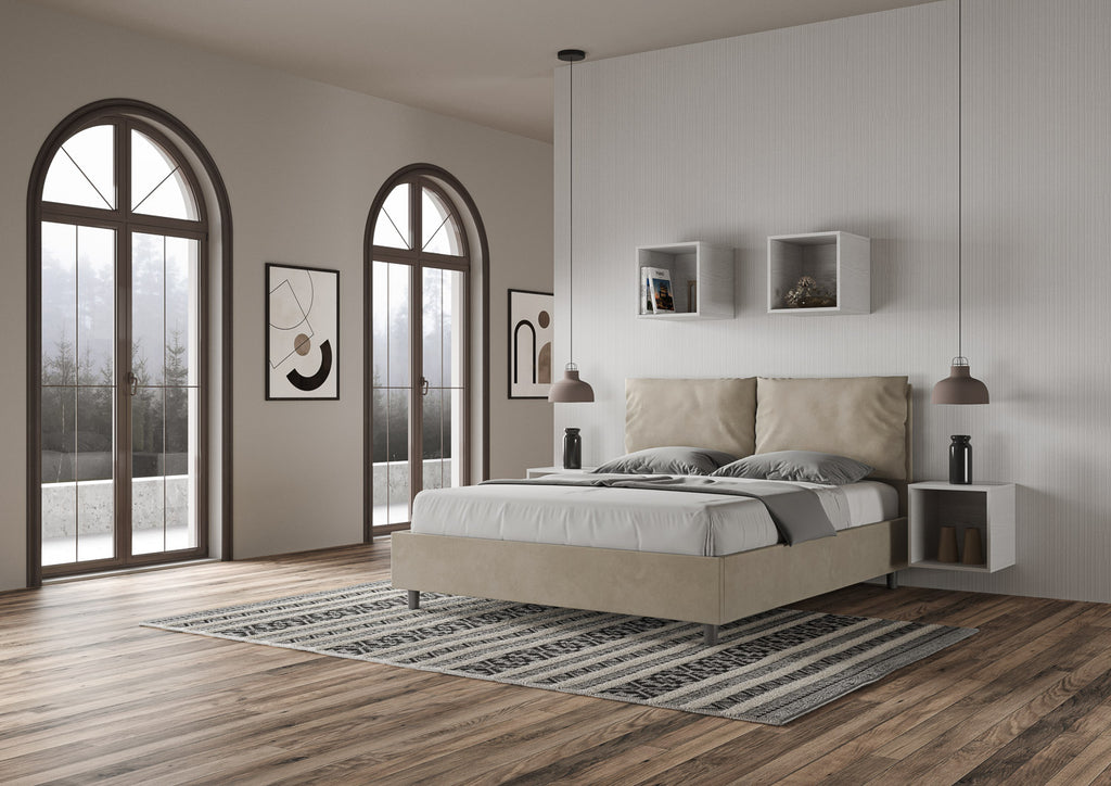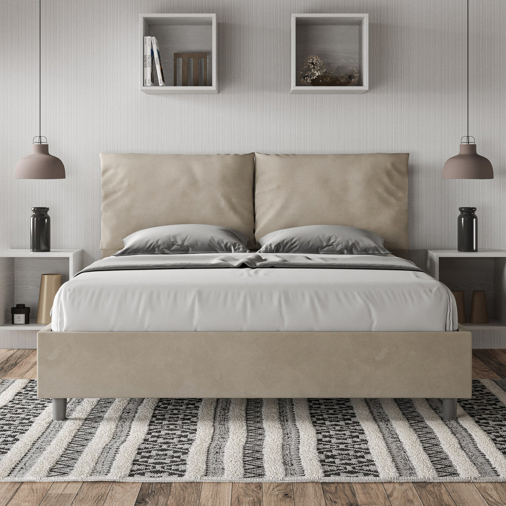 Letto Matrimoniale con Alzata Comoda Imbottito in Microfibra Antea Sabbia Varie Misure