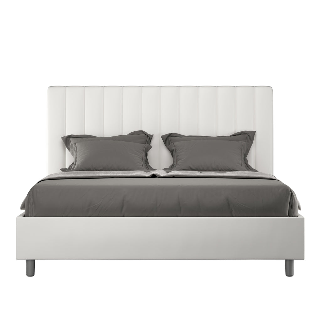 Letto Matrimoniale con Alzata Comoda Imbottito in Similpelle Agueda Bianco Varie Misure
