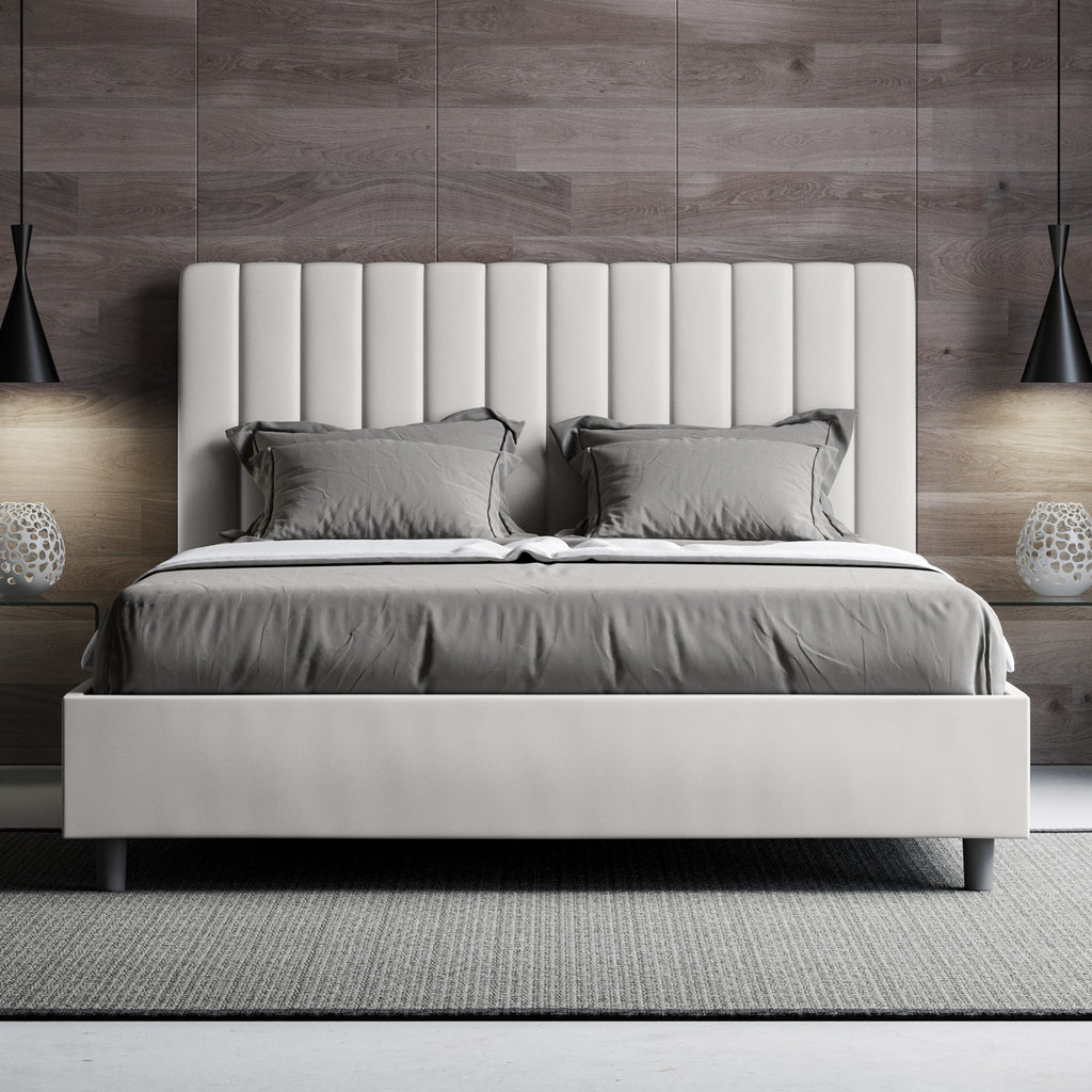 Letto matrimoniale in varie misure Agueda con testata e Letto imbottiti, rivestimento in similpelle, particolarmente versatile e facilmente abbinabile a qualsiasi stile di arredamento. Il letto matrimoniale Agueda è caratterizzato da uno stile moderno ed elegante, evidenziato dalla testiera trapuntata rivestita in similpelle. La presenza del materiale in similpelle, oltre a donare alla stanza un'atmosfera accogliente ed invitante, offre la comodità di una pulizia facile e veloce, grazie all'utilizzo di un semplice panno in microfibra. Letto fornito con rete contenitore con doppia alzata. Rivestimento letto non sfoderabile.