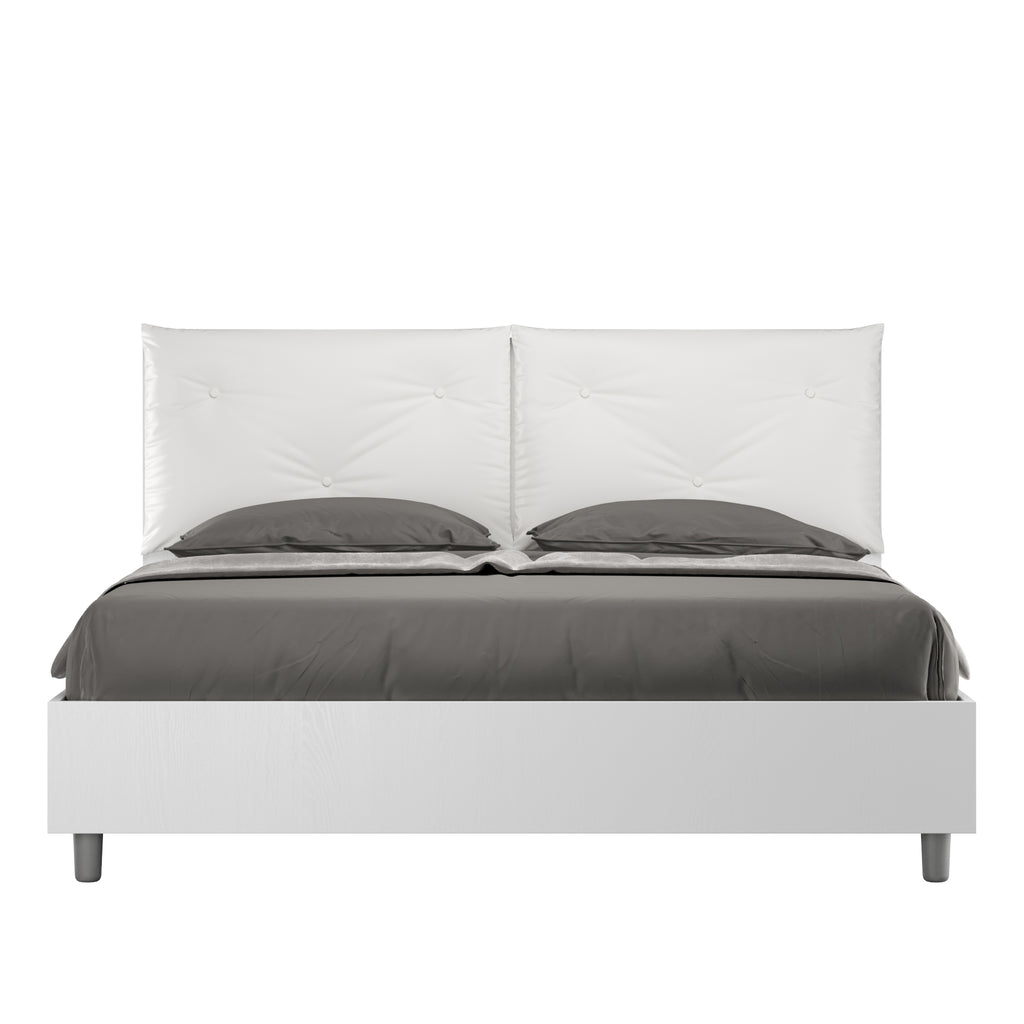 Letto Matrimoniale con Alzata Comoda Struttura Bianco Frassico con Cuscini in Similpelle Appia Bianco Varie Misure