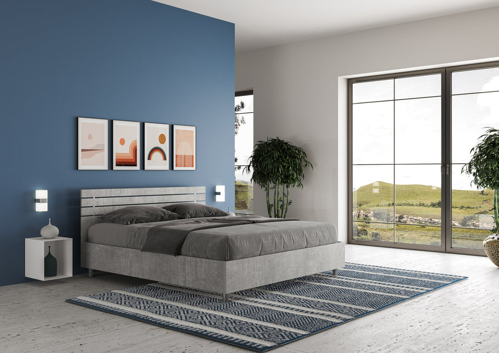 Letto Matrimoniale con Alzata Comoda Testata Dritta a Doghe Ankel Cemento Varie Misure
