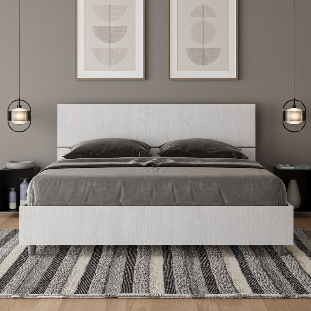 Letto Matrimoniale con Alzata Comoda Testata Inclinata Demas Bianco Frassino Varie Misure