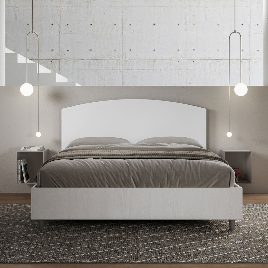 Letto Matrimoniale con Rete e Contenitore Alzata Comoda Struttura Bianco Frassico e Testata in Similpelle Antilia Bianco Varie Misure