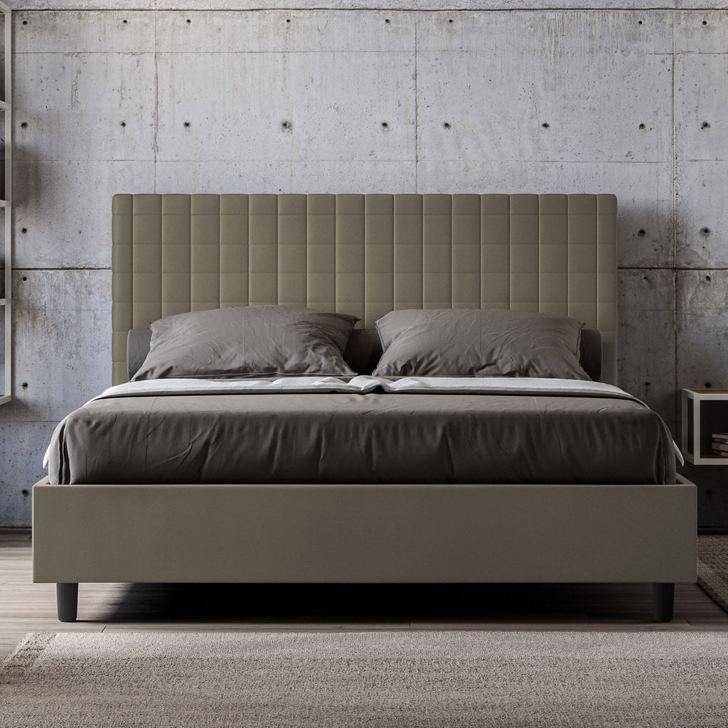 Letto Matrimoniale con Testata e Alzata Comoda Imbottito in Similpelle Sunny Cappuccino Varie Misure