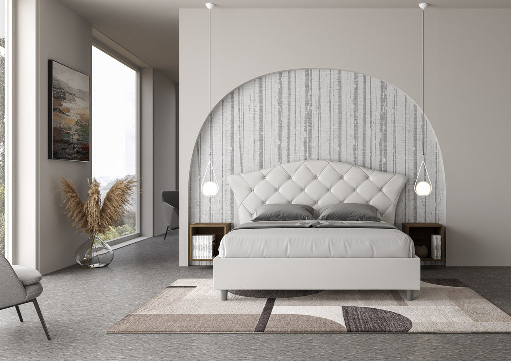 Letto Matrimoniale con Testata e Alzata Doppia Imbottito in Similpelle Langre Bianco Varie Misure